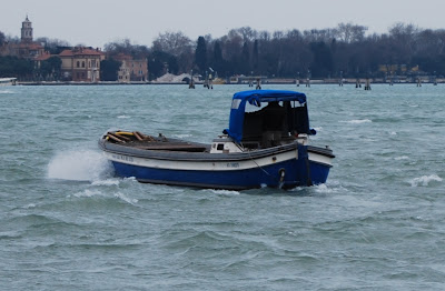 Il vento a Venezia il 9 marzo 2010 ha soffiato con insistenza per tutta la giornata. Il vento a Venezia è stato impetuoso con raffiche che hanno superato i 100 Km/h all'ora nella laguna. Il vento proveniva da nord-est e quindi si chiama Bora. Essa ha sferzato la città anche il giorno precedente provocando delle situazioni di intonaci pericolanti che hanno costretto i vigili del fuoco di Venezia a rispondere a varie richieste di intervento su luoghi ritenuti pericolosi per i passanti. La città era semideserta poichè oltre al fastidiosissimo vento anche la temperatura si era abbassata oltre lo zero. Nonostante tutto si vedevano alcune gondole percorrere il Bacino San Marco. I gondolieri non dovevano vogare ma usare solo il remo come timone, tanta era l'intensità del vento a Venezia. Il momento peggiore era quando le gondole rientravano nei canali ed allora il gondoliere doveva mettere tutta la sua forza per non andare a sbattere da qualche parte. I turisti erano visibilmente preoccupati che una raffica improvvisa potesse ribaltare la gondola. Io dico che con una simile giornata ventosa a Venezia bisogna essere incoscienti ad uscire a fare un giro in una barca a remi, anche se a vogare dovesse essere il miglior gondoliere della città. I rii di Venezia erano rigati dalle scie lasciate dal vento sull'acqua, che aveva un colore grigio più del cielo. Quello che faceva grande impressione era il sibilo del vento e lo sbattere delle imposte al suo passaggio. Ma il luogo più battuto dal vento di bora era la zona a nord di Venezia, cioè da Sant'Alvise alla Celestia, comprese le Fondamente Nuove. Non ho resistito alla tentazione ed ho voluto vedere di persona la furia del vento che si abbatteva sulla riva senza incontrare alcun ostacolo, proveniente da campo aperto. Presso il pontile della Celestia non riuscivo quasi ad avanzare e risultava difficile anche respirare. Devo dire che è stato arduo scattare le foto che vedete nel post perchè le condizioni atmosferiche erano decisamente proibitive. Non ricordo in vita mia un vento a Venezia così forte ed insistente, della durata ormai di oltre due giorni. Nel momento in cui scrivo il vento soffia ancora con la stessa intensità del pomeriggio, forse anche maggiore. Sembra proprio che questo lungo inverno 2009-'10 non voglia finire mai, oltre al forte vento a Venezia, le previsioni indicano possibili nevicate per la giornata odierna.