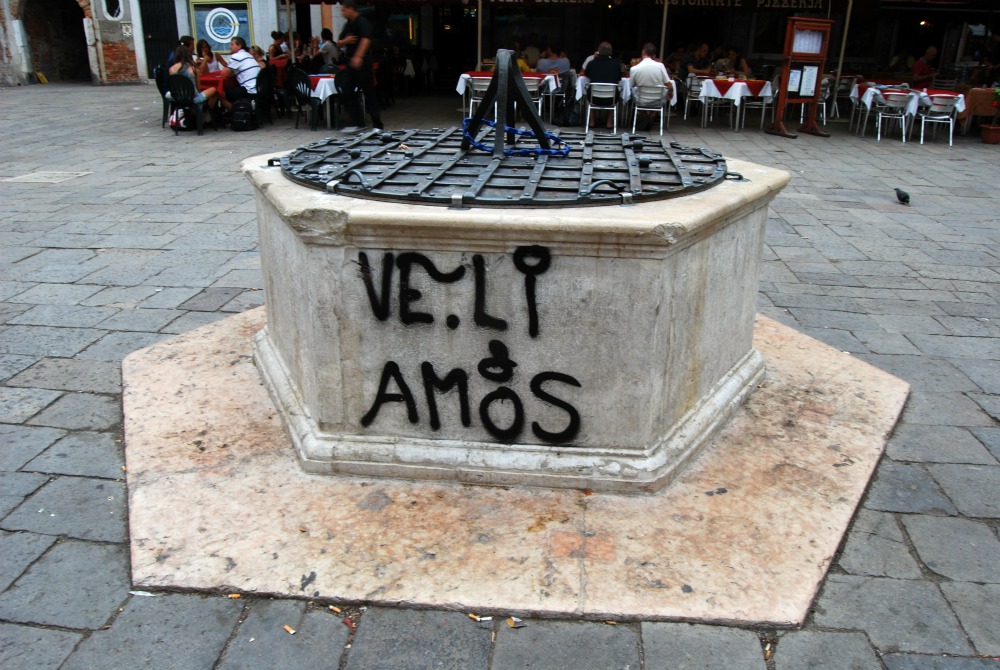 Una vera da pozzo imbrattata a Venezia. Sono infatti costretto a segnalare ancora una volta un atto vandalico ai danni dell'arredo urbano della città. Il vandalismo perpetrato sulla vera da pozzo si è verificato la scorsa settimana in Campo Santa Margherita, ed è tanto più grave se si considera che essa era stata completamente ripulita dalle scritte dei writers nel mese di aprile scorso. L'intervento di recupero era durato per delle settimane ed aveva riportato la vera da pozzo al suo antico splendore. La ripulitura della stessa era stata effettuata con i soldi dei contribuenti. Adesso si dovrà ripulire la vera da pozzo imbrattata per l'ennesima volta. Sembra che il responsabile della scritta sia già stato preso dalle forze dell'ordine e si trovi in custodia alle carceri di Santa Maria Maggiore. Si spera che un trattamento severo del caso possa dissuadere in futuro il verificarsi di fatti simili.